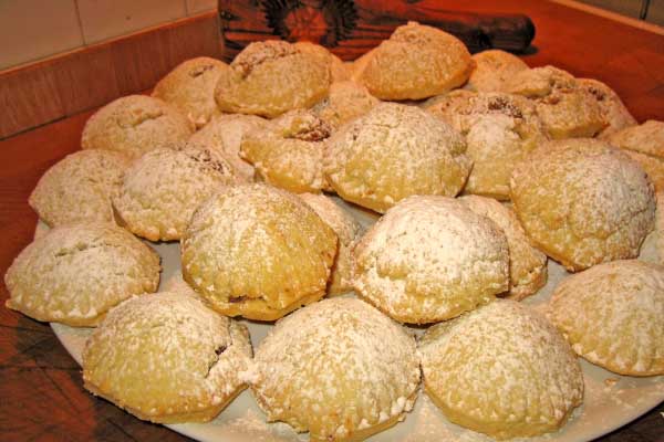 Petits gâteaux aux fruits secs et à l'eau de fleurs d'orangers. Fourrés de noix, de pistaches et de dattes. Les gâteaux sont disposés dans des moules en bois artisanaux et le geste sec pour les demouler ravit les enfants.