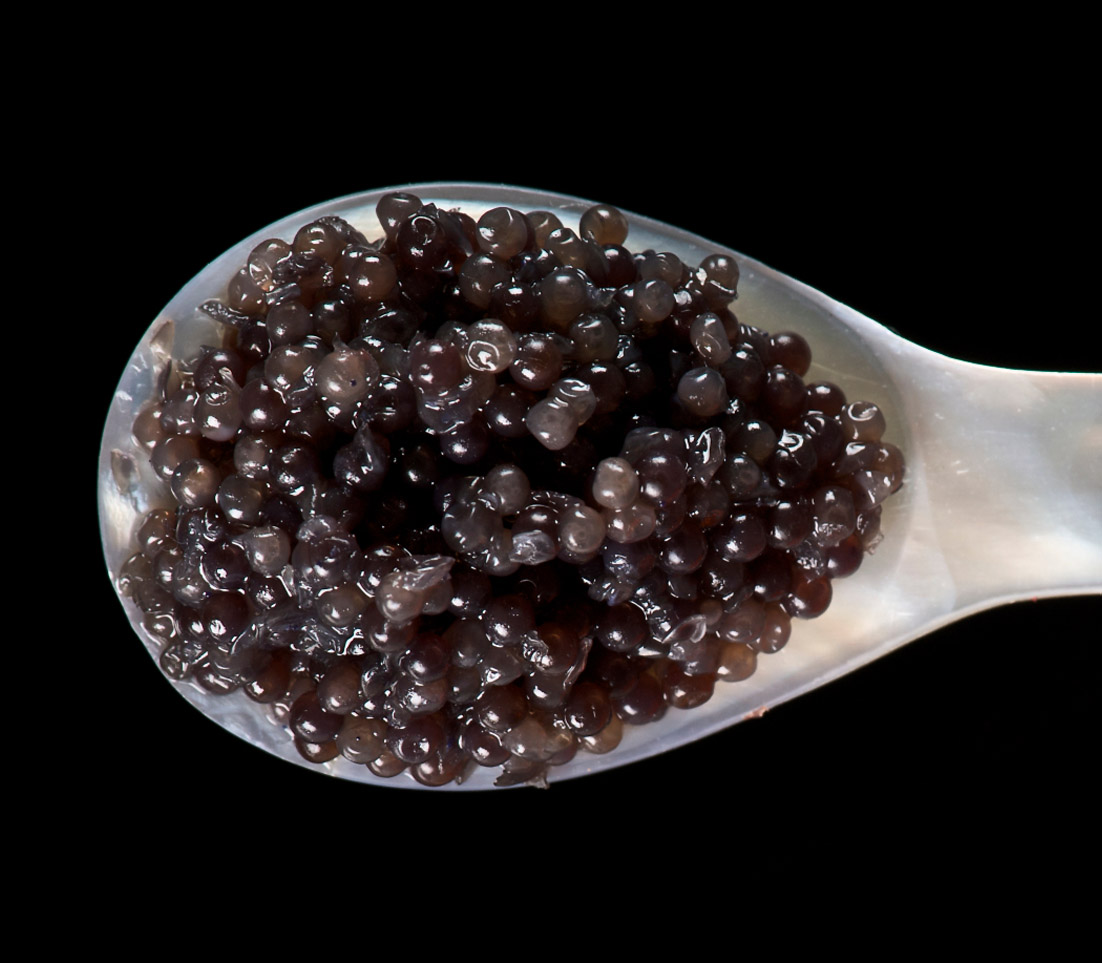 Ce caviar est élégant et éclatant. Ses grains, assez fermes, aux reflets dorés, de belle taille, éclatent en bouche et révèlent des notes marines qui rappellent la fraicheur et la finesse de l’huître.