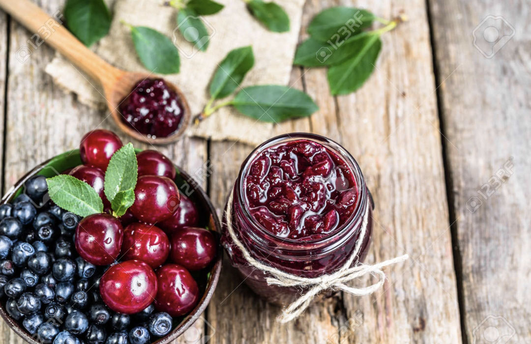 Des cerises du jardin, du sucre, de la pectine de pomme et c’est tout!
